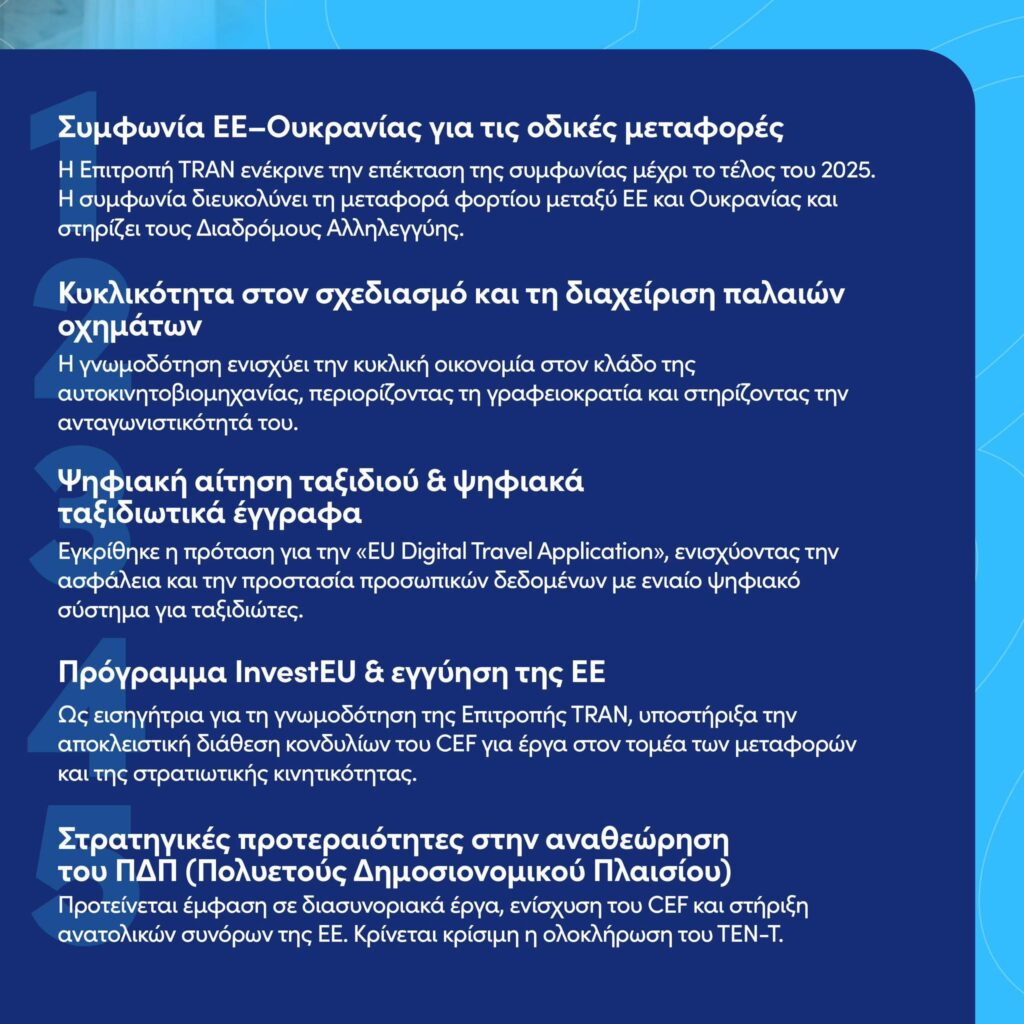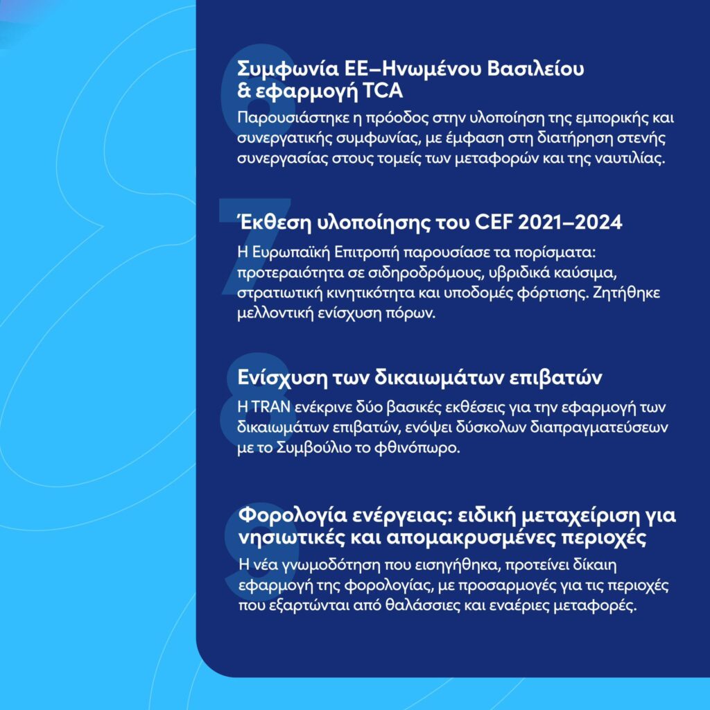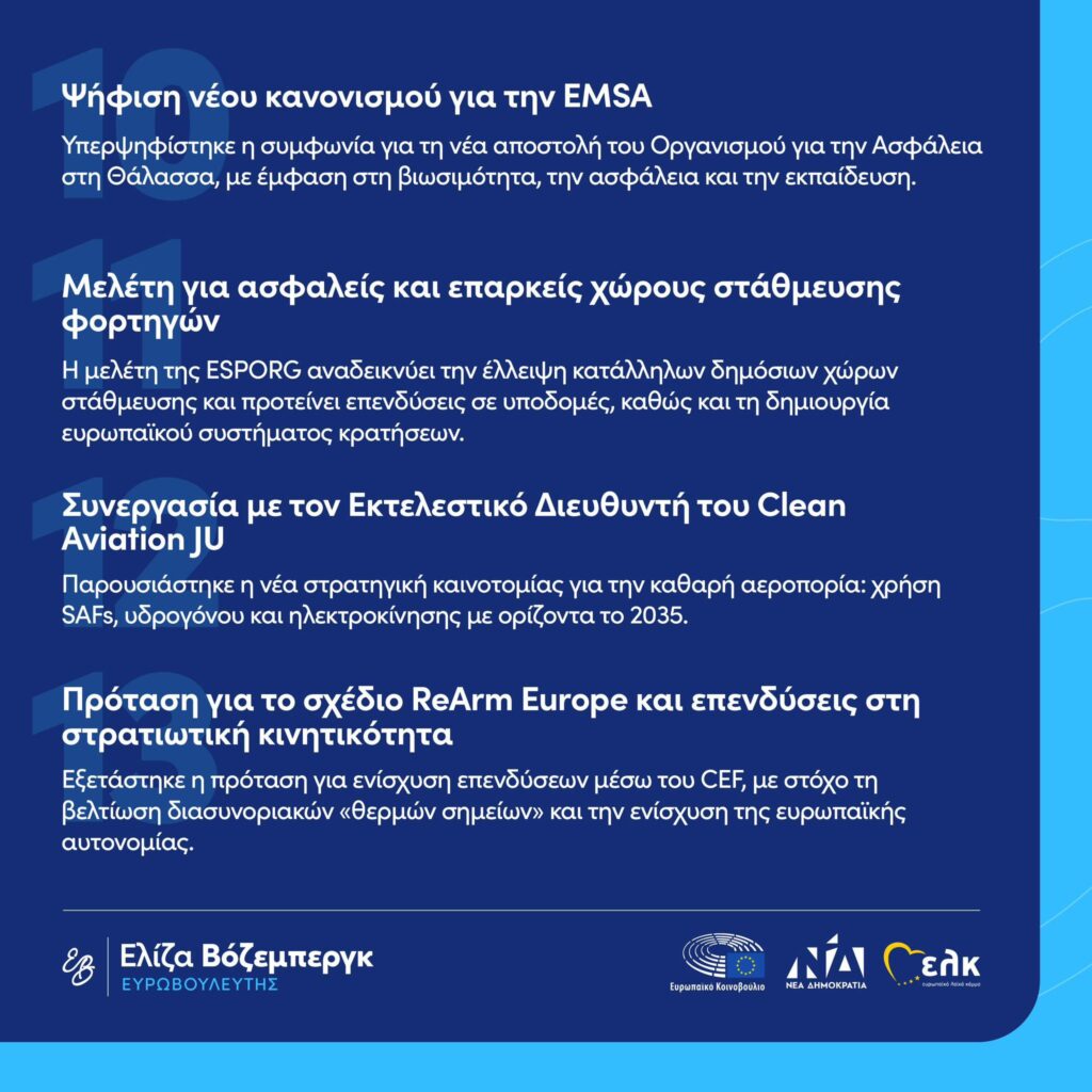 Αυτόν το μήνα ασχοληθήκαμε, μεταξύ άλλων, με την CEF, τα δικαιώματα των επιβατών, την ασφάλεια στις αεροπορικές και θαλάσσιες μεταφορές, τη στρατιωτική κινητικότητα και την κυκλική οικονομία στον τομέα των μεταφορών.