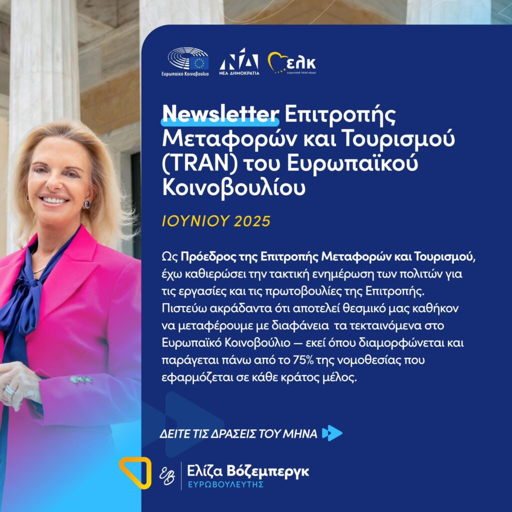 Ως Πρόεδρος της Επιτροπής Μεταφορών και Τουρισμού, συνεχίζω την τακτική ενημέρωση των πολιτών για τις πρωτοβουλίες και τις αποφάσεις που διαμορφώνουν το μέλλον των μεταφορών και του τουρισμού στην ΕΕ.